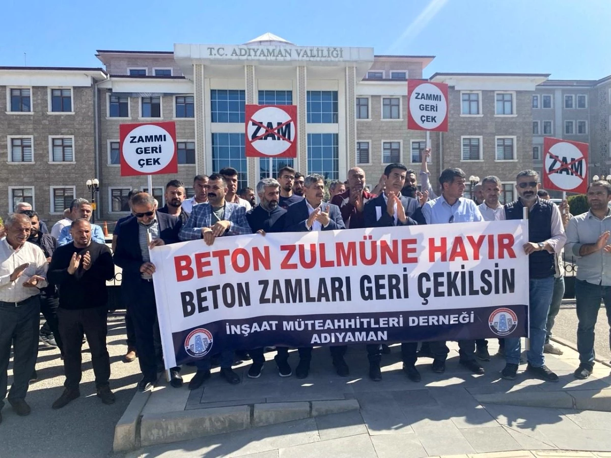 Adıyaman İnşaat Müteahhitleri Derneği tarafından Adıyaman Valiliği önünde yapılan basın açıklamasında, hazır beton fiyatlarına yapılan zamların geri çekilmesini ve bu durumun bütün Adıyaman halkını mağdur edeceği vurgulandı.