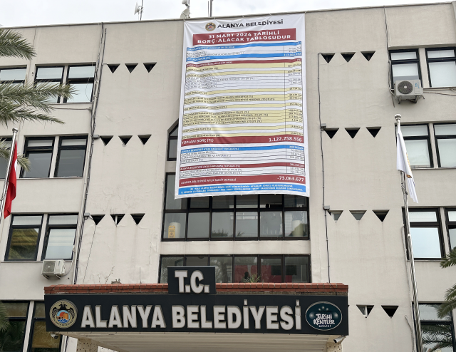 31 Mart 2024 Mahalli İdareler Genel Seçimleri'nde Alanya'da sandıktan galibiyetle çıkan CHP'li Belediye Başkanı Osman Tarık Özçelik, önceki dönemin borç çizelgesinden oluşan afişi, belediye binasına astırdı. Binanın ön cephesinde sergilenen afişte, belediyenin nakit ve bankada mevcut varlıklarının yanı sıra banka kredileri hesabı, piyasaya borçlar, diğer borçlar, ödenecek vergi ve fonlar hesabı, SGK prim borçları, YİKOP kültür payı, büyükşehir belediyesi payı ile Alanya Belediyesi Personel Ltd. Şti'nin vergi, SGK ve bireysel emeklilik sistemi borçları listelendi. Afişte Alanya Belediyesi'nin toplamda 1 milyar 122 milyon 258 bin 556 lira borcu olduğu belirtildi.