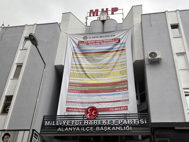 MHP'den yapılan yazılı açıklamada, 2014 yılında bütçesi kadar borcu ile devralınan Alanya Belediyesi, 10 yıllık süre zarfında bütçesini 40 kat büyüterek, bütçesinin yüzde 10'un altında bir borç ile ve halihazırda silinemez, yıkılamaz mega projeleriyle devretmiş bulunmaktadır. Alacak kalemi eklenmiş Alanya Belediyesi 'mali durum göstergesi' ektedir. Alanya Belediyesi'nin CHP belediyesine geçişinin ardından Alanya Belediyesi binasına asılan mali durum tablosunun sadece belediye borçlarını yansıttığı fakat sadece belediyenin borçların yazılarak algı oluşturmaya çalışıldığı ortadadır. Aksine asıl borç alacağı belirten mali tabloyu parti binamıza asarak vatandaşlarımıza, Alanya'mıza ve kamuoyuna sunarız denildi.