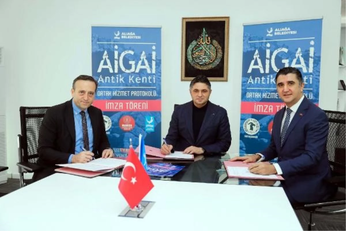 Aliağa'ya yaklaşık 15 kilometre mesafedeki Herodot'un 'Aiolis bölgesi' olarak bahsettiği Batı Anadolu'daki 12 Aiol kentinden biri olan Aigai anti kentinde, 2004 yılında kazı çalışmaları başladı. Manisa idari sınırları içinde olmasına rağmen coğrafi yakınlık ve ulaşımıyla Aliağa coğrafyasının bir parçası olan Aigai Antik Kenti'ndeki bilimsel çalışmalara Aliağa Belediyesi 2020 yılından bu yana destek veriyor. Aliağa Belediyesi, Aliağa- Manisa sınırındaki Yunt Dağı eteklerindeki Köseler Köyü'nde yer alan ve her yıl ortalama 15 bin tarih ve arkeoloji meraklısının ziyaret ettiği tarihi M.Ö. 8'inci yüzyıla kadar uzanan Aigai Antik Kenti'ne sponsorluk desteğini bu yıl da devam ettirecek. Arazinin durumuna göre inşa edilmiş surları içinde üç katlı agora ve bu yapıyı taşıyan duvarlar, meclis binası, teras duvarlı stadyum, tiyatro ve Demeter Tapınağı gibi kalıntılar bulunan Aiagi antik kentindeki devam eden kazılara desteğin sürdürülmesi için Aliağa Belediyesi, Manisa İl Kültür ve Turizm Müdürlüğü ve Aigai Kazı Başkanlığı arasında protokol imzalandı. Aliağa Belediye Başkanlık makamında gerçekleştirilen protokol imza törenine; Aliağa Belediye Başkanı Serkan Acar, Manisa İl Kültür ve Turizm Müdürü İbrahim Sudak ve Aigai Arkeolojik Kazı Başkanı, Celal Bayar Üniversitesi Fen-Edebiyat Fakültesi Arkeoloji Bölümü Öğretim Üyesi Prof. Dr. Yusuf Sezgin katıldı.