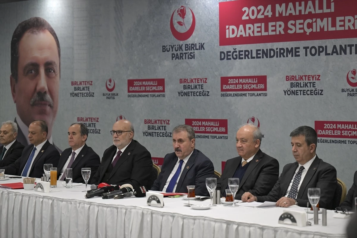 Destici, "Biz kendi partimiz açısından baktığımızda, 2019 yerel seçimlerinde 5 ilçe, 5 de belde belediyesi kazanmıştık. Bu seçimlerde, Sivas Belediyesi, 15 ilçe, 7 belde ve İspir, Kozan, Gerede, Sinop Durağan, Iğdır Karakoyunlu, Aksaray Gülağaç buralarda da itiraz süreçleri devam etmektedir. Bunlar da şayet lehimize sonuçlanırsa Büyük Birlik Partisi, 30'a yakın yerde belediye başkanlığı kazanmış olacaktır." diye konuştu.
