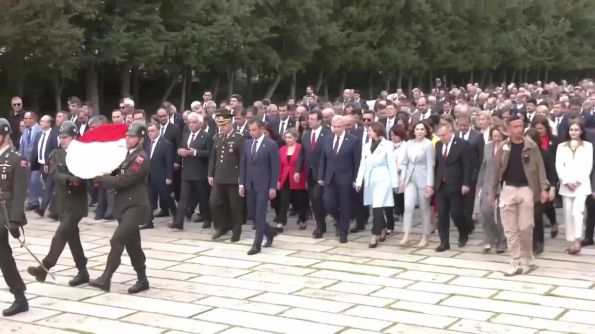 Program belediye başkanlarının Anıtkabir'e hareket için genel merkez önünde buluşmasıyla başladı. CHP Genel Başkan Özgür Özel, 408 belediye başkanıyla Ata'nın huzuruna çıktı. Anıtkabir'de Özel ve belediye başkanlarına; genel başkan yardımcıları, PM üyeleri ve il başkanları eşlik etti. Heyet, Aslanlı Yol'da yürüyerek Anıtkabir avlusuna giriş yaptı. Mozoleye çelenk bırakan CHP lideri, ardından Anıtkabir Özel Defteri'ni imzaladı.