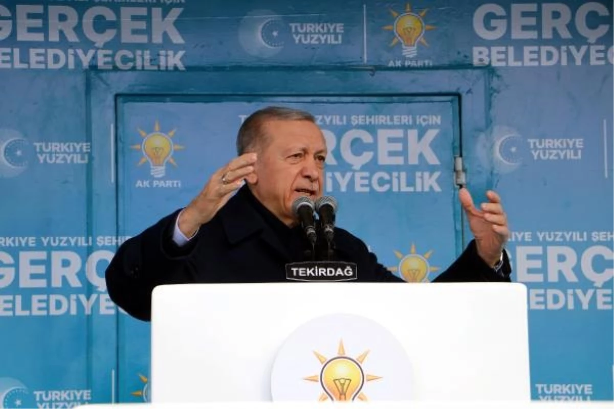 Erdoğan, 14-28 Mayıs seçim süreci ve sonrasında muhalefetin depremzedelere haraket savurmaktan çekinmediğini ifade ederek, "Depremzedelerimize bugün bile hatırladıkça onlar adına hicap duyduğumuz hakaretleri savurmaktan çekinmediler. Ama bir kez olsun kendilerini hesaba çekmediler. Bir defa bile egolarını ayaklar altına alıp, vatandaşa öz eleştiri vermediler. Millete parmak sallamadan önce şöyle aynanın karşısına geçip, 'acaba nerede hata yapıyoruz?' sorusu kendilerine sormadılar. Bir günah keçisi bulup, hiçbir şey olmamış gibi yollarına devam ettiler. Son seçim yenilgisinde de tüm faturayı '13'üncü cumhurbaşkanımız' diyerek yere göğe sığdıramadıkları bay Kemal'e kestiler. Türkiye'yi yönetmeye namzet gördükleri zatı, kendi partilerini yönetmeye yeterli görmediler. Aziz kardeşlerim, CHP başta olmak üzere muhalefetin mazisine baktığınızda bunun gibi sayısız garabet ve skandallarla karşılaşırsınız. Anadolu insanını hiçbir zaman hizmete ve hürmete layık bulmadılar. Biraz emek verip çalışıp, ter döküp, seçmenin kalbini ve zihnini kazanmak yerine kolaya kaçtılar. Kimi zaman vesayet odaklarından, kimi zaman emperyalist güçlerden, kimi zaman da son seçimlerde olduğu gibi terör baronlarından medet umdular. Aylarca Kandil'deki terör elebaşları, bunlar için açıkça oy istedi. Öyle değil mi? Kandil'den oy istediler. Benim Tekirdağlı kardeşim, Kandil'den oy isteyenlerin uzantılarına oy verir mi? 50 gün sonra sandıklarda bunlara gereken cevabı vermeye hazır mıyız? CHP ve şürekasından bir kez olsun, bu utanmazlığa itiraz gelmedi. Bugün de kapalı kapılar ardında bölücü örgütün uzaktan kumanda ettikleri yapılarla dikkat edin, çay demlemiyorsunuz, demlenerek seçim kazanmanın hesabını yapıyorlar. Niçin bu tür yollara tevessül ediyorlar biliyor musunuz? Çünkü bunların millete ve milli iradeye saygıları yok. Bunlarda demokrasiye ve demokrasi kültürüne bağlılık yok. Türkiye'nin önünü açmak, şehirlerimizi yeni yatırımlarla geliştirmekle ilgili bir dert yok. Bunun yerine ne var? Tek parti dönemi faşizmine özlem var. Vatandaşa tepeden bakma hastalığı var, terör örgütlerine şaşı bakma zihniyeti var. Siyasi ikballeri için her şeyi yapma omurgasızlığı var. Seçim meydanlarında tutamayacakları sözleri verme hainliği var. Ama artık millet nazarında tüm kredilerini bitirmiş, sıfırı tüketmişlerdir. CHP'nin istismar ve korku siyaseti inşallah 31 Mart'ta son bulacaktır" dedi.
