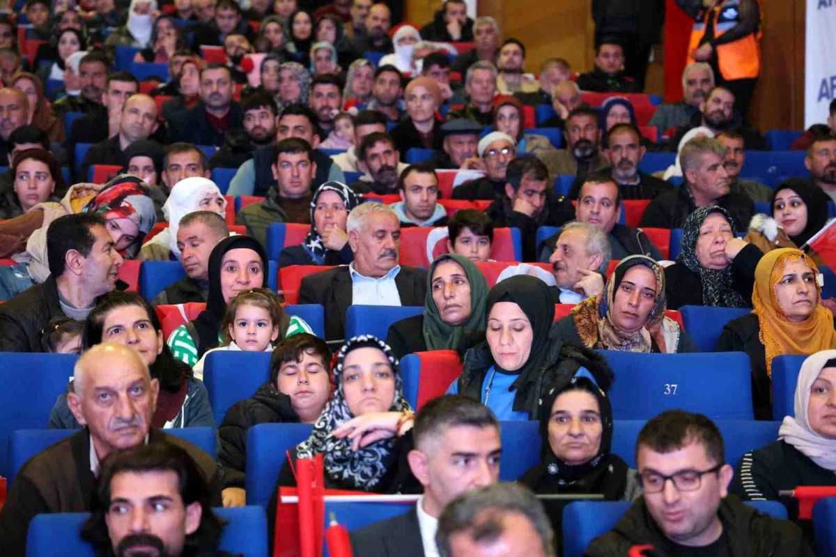 Konuşmaların ardından Bakan Yerlikaya, İçişleri Bakan Yardımcısı Münir Karaloğlu, Diyarbakır Valisi Ali İhsan Su, kura sonucu konut sahibi olan ilk ailelere anahtarlarını teslim etti.