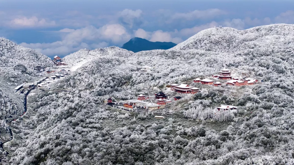 Çin'in Sichuan eyaletindeki Jinfo Dağı'nın karla kaplı görüntüleri
