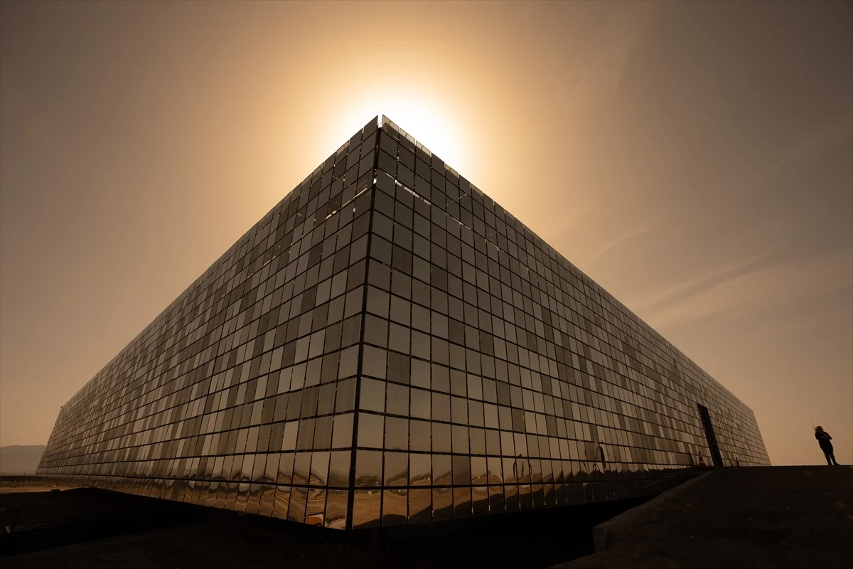 Konya'nın Karapınar ilçesinde bulunan santralin işletilmesi amacıyla bir çok teknik altyapı ve dijital araçlarla donatılan bina, fütürist tasarımıyla dikkati çekiyor.