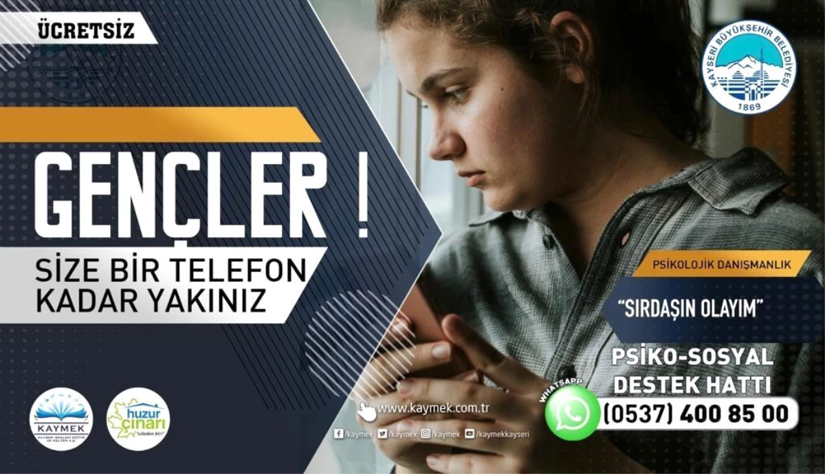Kayseri Büyükşehir Belediyesi bünyesinde faaliyet gösteren Kayseri Mesleki Eğitim ve Kültür A.Ş. (KAYMEK) Huzur Çınarı Aile Danışmanlık ve Rehberlik Merkezi'nin hayata geçirdiği örnek projesi 'Sırdaşın Olayım' vatandaşların kişisel, sosyal ve akademik gelişimlerine katkı sağlamak amacıyla uzman psikolog ile psikolojik destek vermeye devam ediyor.