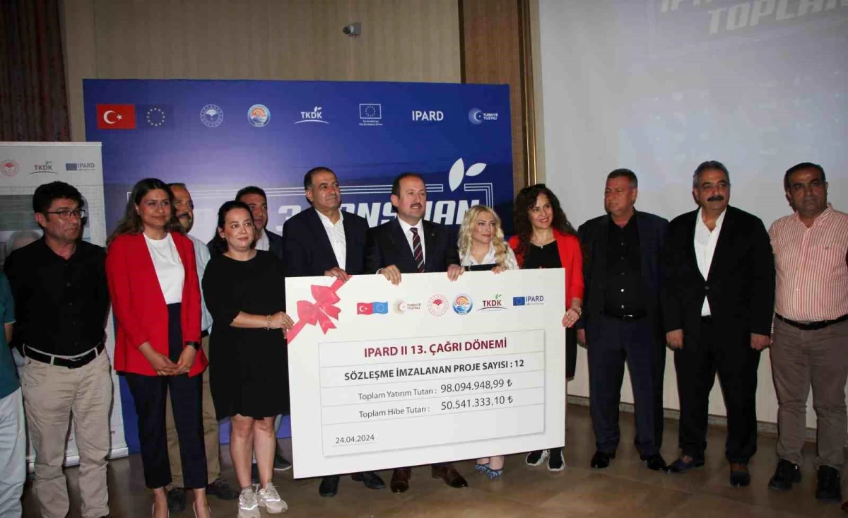 Konuşmaların ardından IPARD kapsamında sözleşme imzalamaya hak kazanan yatırımcıları çekleri verildi. - MERSİN