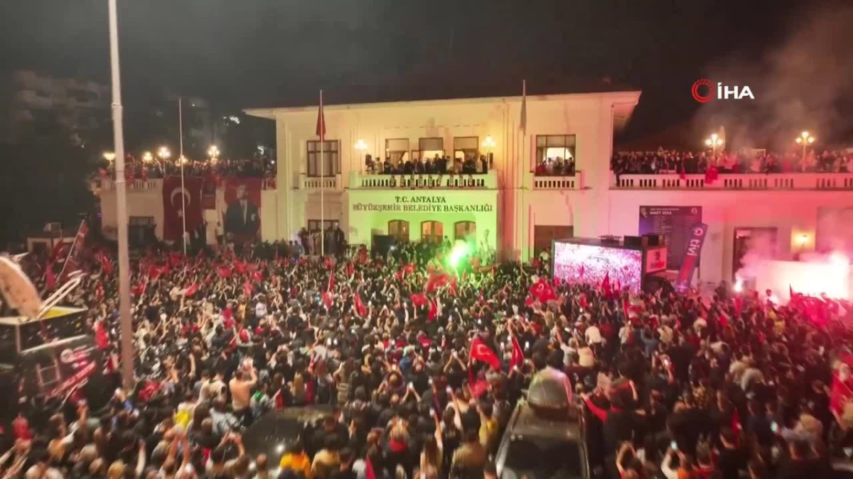 CHP'nin Antalya'da başarılı bir sonuç elde etmesinin ardından binlerce partili, Karaoğlan Parkı içindeki Eski Antalya Büyükşehir Belediye Başkanlığı önündeki alanda toplandı. Ellerinde ay yıldızlı ve CHP bayrağı bulunan binlerce vatandaş, büyük bir coşku yaşadı. Muhittin Böcek'e, kesin olmayan sonuçlara göre Muratpaşa Belediye Başkanlığını yeniden kazanan Ümit Uysal, Konyaaltı Belediye Başkanlığına seçilen Cem Kotan, Aksu Belediye Başkanlığı'na seçilen İsa Akdemir'de eşlik etti.