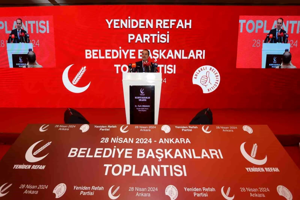 Erbakan, bir otelde düzenlenen Yeniden Refah Partisi Belediye Başkanları Toplantısı'na katıldı. Burada konuşan Erbakan, partisinin 31 Mart Mahalli İdareler Genel Seçimlerinde yüzde 6,2 oy alması sonucu üçüncü parti olduğunu kaydederek, " Bu büyük başarı, hepimizi sevindirdi. Belediye Meclisi seçiminde Türkiye geneli oy ortalamamız yüzde 7'ye ulaştı. Bu sonuçlara göre bir önceki seçime göre oylarını yüzde yüzün üzerinde artırarak 31 Mart seçimlerinin tartışmasız galibi ve zafer kazanan partisi Yeniden Refah Partimiz olmuştur. Yeniden Refah Partimiz, bugün Türkiye siyasetinin parlayan yıldızıdır ve Türkiye siyasetinin en güçlü aktörü ve anahtar partisi konumundadır" değerlendirmesinde bulundu.