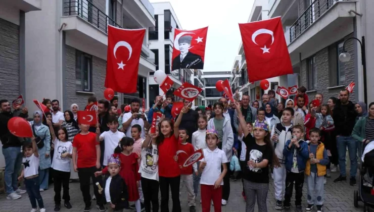 Pandeminin bile kutlamaya engel olmadığı günü gelenekselleştirdiklerini belirten Büşra Baycan, “Biz her sene çok büyük özenle bugünü programlıyoruz. Hatta bir hafta öncesinde bunun hazırlıklarına başlıyoruz. Bütün site sakinleri olarak mutlaka herkes bir şeyler yapıyor. Çocuklarımızın, bugünleri unutmaması için bir de bu evde kalmışlığın vermiş olduğu bir sıkıntıyı dışarı atmak için bir hafta boyunca bu sitede çalışmalar yapıyoruz. Camları süslüyoruz, balonlar şişiriyoruz. Hatta geçtiğimiz yıllarda resim yarışması yapmıştık, hala onları saklıyoruz. Onlar da büyüyorlar bununla. Değerlerimizi öğretiyoruz aslında çocuklarımıza. Pandemi sürecinde çocuklarımızın, okullarda bile iptal olan bir tören süreçleri vardı. Biz bugünü yaşatmak istedik, çünkü çocuklarımız bunu unutsun istemedik. Pandemi sürecini ne kadar süreceğini de bilmiyorduk sonuç olarak. Çocuklarımızın üzerinde evde kalmış olmanın verdiği sıkıntılar vardı dolayısıyla birlikte toplandık ve bu organizasyonu yapmaya karar verdik, sitemizi süsledik. İlk olarak resim çizmeyle başladık, sonrasında görkemli törenlere dönüştürdük. İlk başta mesafeli olarak kutladığımız süreç şimdi sarılma ve kucaklaşma ile devam ediyor, çok mutluyuz” dedi.