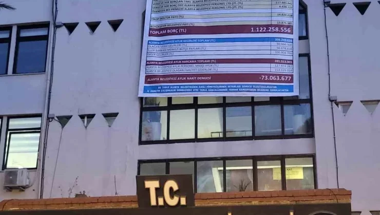 Antalya’nın Alanya ilçesinde 31 Mart Yerel Seçimleri sonrasında CHP’den Belediye Başkanı seçilen Osman Tarık Özçelik, seçim öncesinde verdiği sözü tutarak, belediyenin borç listesini ve aylık gelir gider dengesini ana binaya astı. Listeye göre Alanya Belediyesi’nin toplamda kısa vadede ödenmesi gereken 1 milyar 122 milyon 258 bin 556 TL borcu bulunuyor.