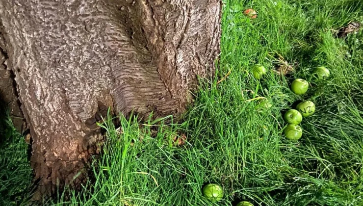 Duvarıma yapılan sanat eseri halen gelişmeyi sürdürüyor. Bazıları sanki dallardan düşmüş gibi elmalar da bıraktı. Bir anlamda Banksy elma yetiştiren tek kiraz ağacını yaratmış oldu.