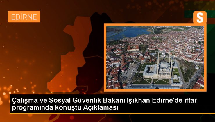 Işıkhan, kentteki bir tesiste düzenlenen “Türkiye Yüzyılı’nda Çalışma Hayatı İftar Buluşmaları” programında yaptığı konuşmada, Edirne’nin tarım, sanayi, endüstri ve ticarette hem ülke hem de bölge için büyük önem taşıyan şehirler arasında yer aldığını söyledi.