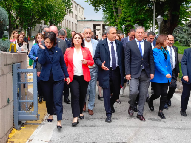 Cumhuriyet Halk Partisi (CHP), yeni müfredatı protesto etmek için Milli Eğitim Bakanlığı’nın (MEB) önüne geldi. CHP Genel Başkan Yardımcısı Suat Özçağdaş, CHP Grup Başkanvekili Murat Emir ve CHP milletvekilleri, bugün TBMM’den yürüyerek Milli Eğitim Bakanlığı’na geldi.