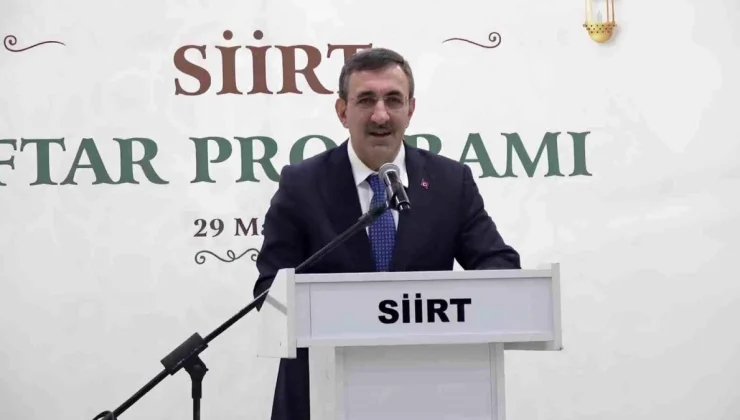 Cumhurbaşkanı Yardımcısı Cevdet Yılmaz, Siirt’te iş adamları, sivil toplum kuruluşlarının temsilcileri, partililer ve vatandaşlarla bir araya geldi. Yılmaz, “Cumhur İttifakı’na verilen her oy Siirt’in geleceğine verilen oydur” dedi.