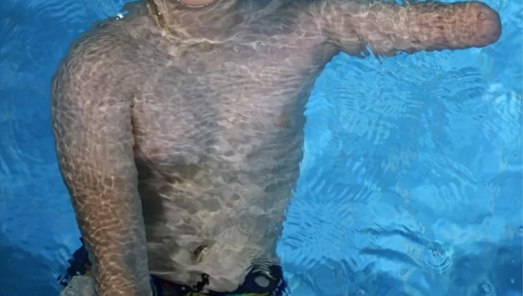 Tek koluyla evde ve okulda her işini kendisi gören, havuza girerken de hazırlıklarını yardım almadan yapan Muhammed Ali, bir yıldır antrenörü Erkan Altay gözetiminde haftanın 6 günü yüzme antrenman yapıyor.
