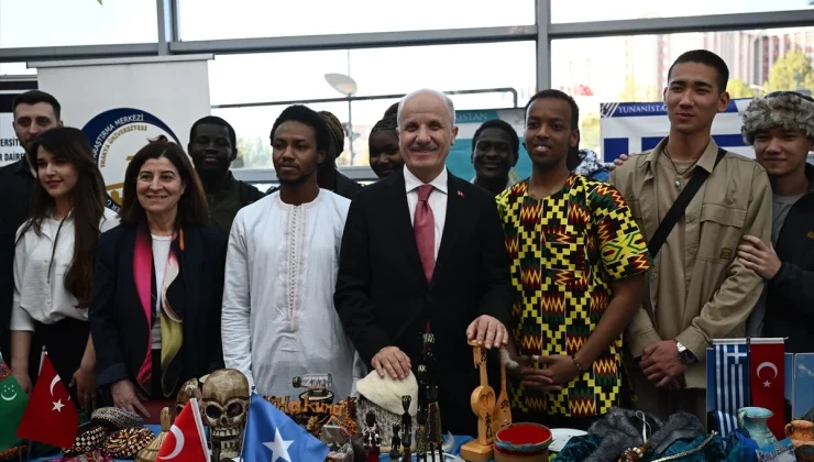 Ardından üniversitenin öğrenci topluluklarının stantlarını gezerek bilgi alan Özvar’a, bir öğrenci tarafından Kazakistan’ın milli kıyafeti giydirildi.