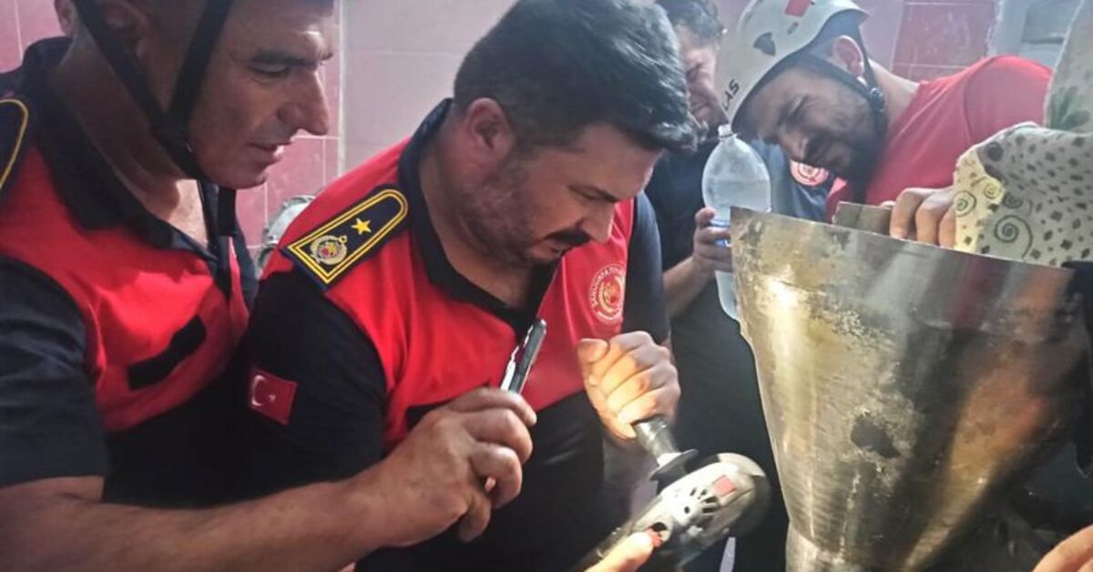 Olay yerine gelen ekipler, çocuğu kurtarmak için çalışma başlattı. İtfaiye ekipleri, kolun daha fazla zarar görmemesi için spiral ve demir makasıyla hamur makinesini keserek çocuğu kurtardı.