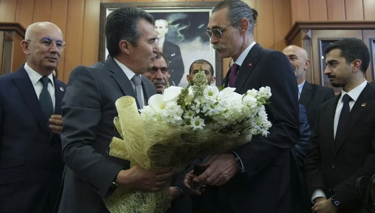Konuşmaların ardından Satılmış, Beşikçioğlu’na başkanlık mührünü verdi ve çiçek takdim etti.