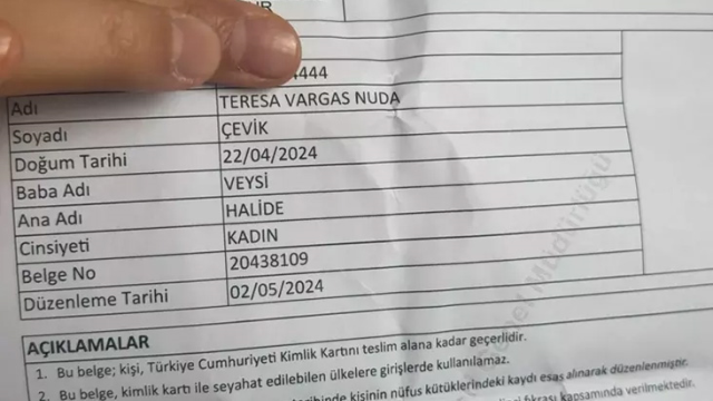 Diyarbakır’da yaşayan Veysi Çevik çocuklarına verdiği isimlerle dikkat çekiyor. Daha önce oğluna Kuaresma Azad kızına ise Anne Maria Raperin ismini veren Çevik, 22 Nisan’da yeni doğan kızına milli voleybolcu Melissa Vargas’tan esinlenerek Teresa Vargas Nuda ismini verdi.