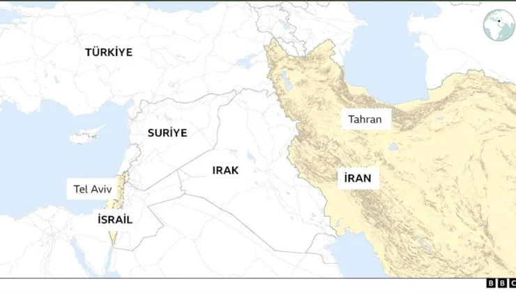 İran’dan İsrail’e en kısa mesafe Irak, Suriye ve Ürdün üzerinden 1000 kilometre civarında.