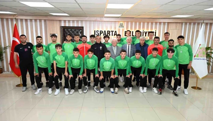 Isparta32 Spor U19 takımının yönetici, teknik heyet ve sporcuları, pazar günü Antalya’da saat 18.00’da İzmir Buca ile oynayacağı yarı final karşılaşması öncesinde Isparta Belediye Başkanı Şükrü Başdeğirmen’ı ziyaret etti. Başkan Başdeğirmen, müsabaka öncesinde sporculara başarı dileklerini iletti.