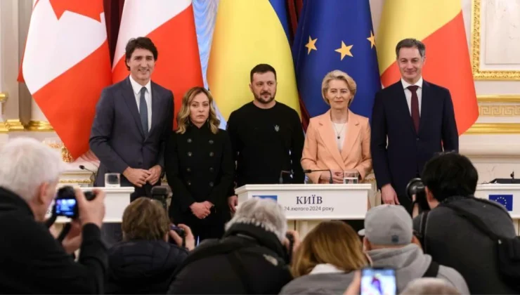 Meloni, İtalya’nın dönem başkanlığını yaptığı G7’nin ilk liderler zirvesine Ukrayna’dan katıldı. Rusya’nın Ukrayna’yı işgalinin 2. yıldönümünde Meloni ile birlikte Kanada Başbakanı Justin Trudeau ve Avrupa Komisyonu Başkanı Ursula von der Leyen de Kiev’de Ukrayna Devlet Başkanı Volodimir Zelenskiy ile bir araya geldi.