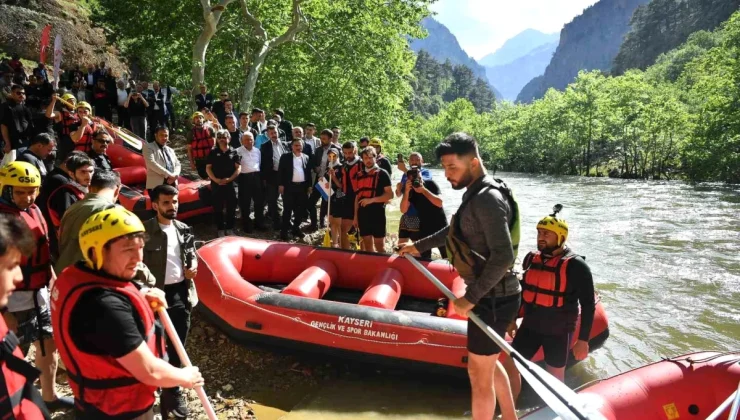 Kayseri Büyükşehir Belediye Başkanı Dr. Memduh Büyükkılıç, Kayseri Valisi Gökmen Çiçek ile birlikte Yahyalı ilçesine kazandırılan 8 kilometrelik Rafting ve Kano Faaliyetleri Parkuru’nda ilk yarışın startını verdi.