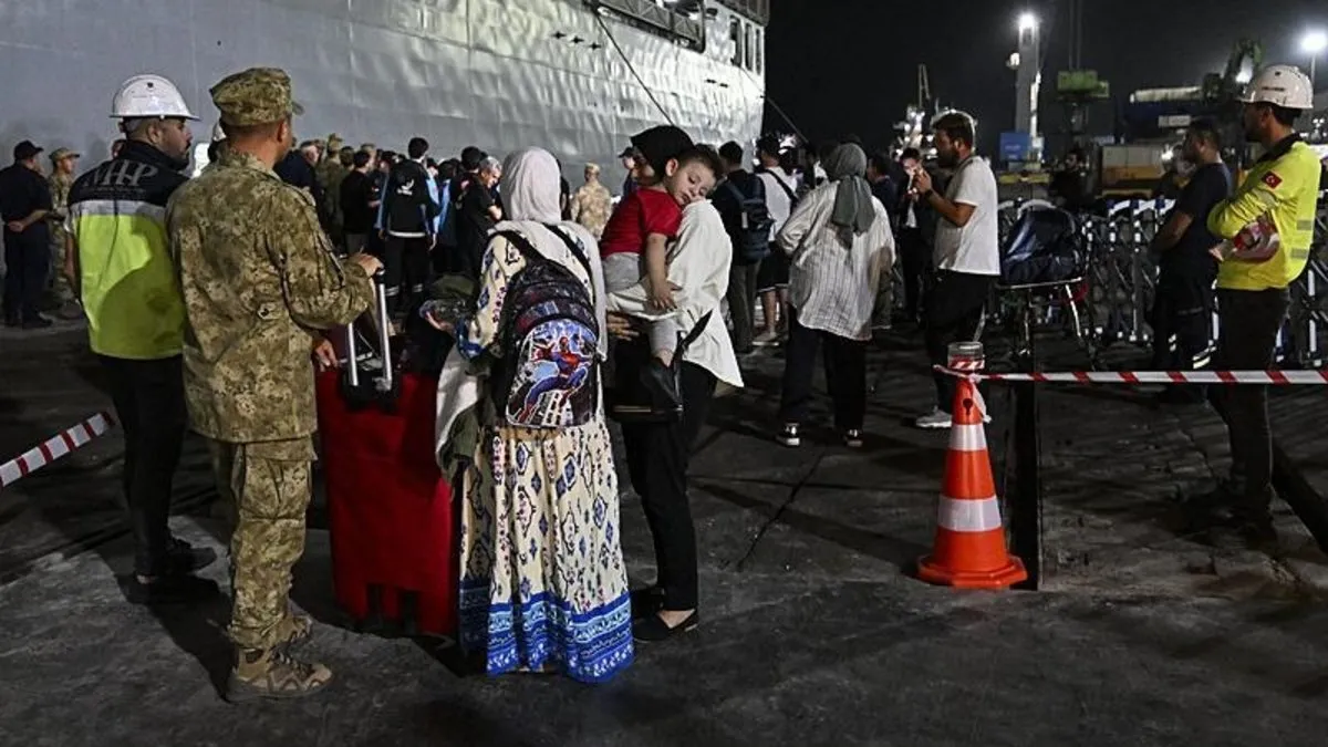 Beyrut Limanı’ndan bindirilen 378 sivili taşıyan gemi, ulaştığı Mersin Limanı’nda rıhtıma yanaştı.