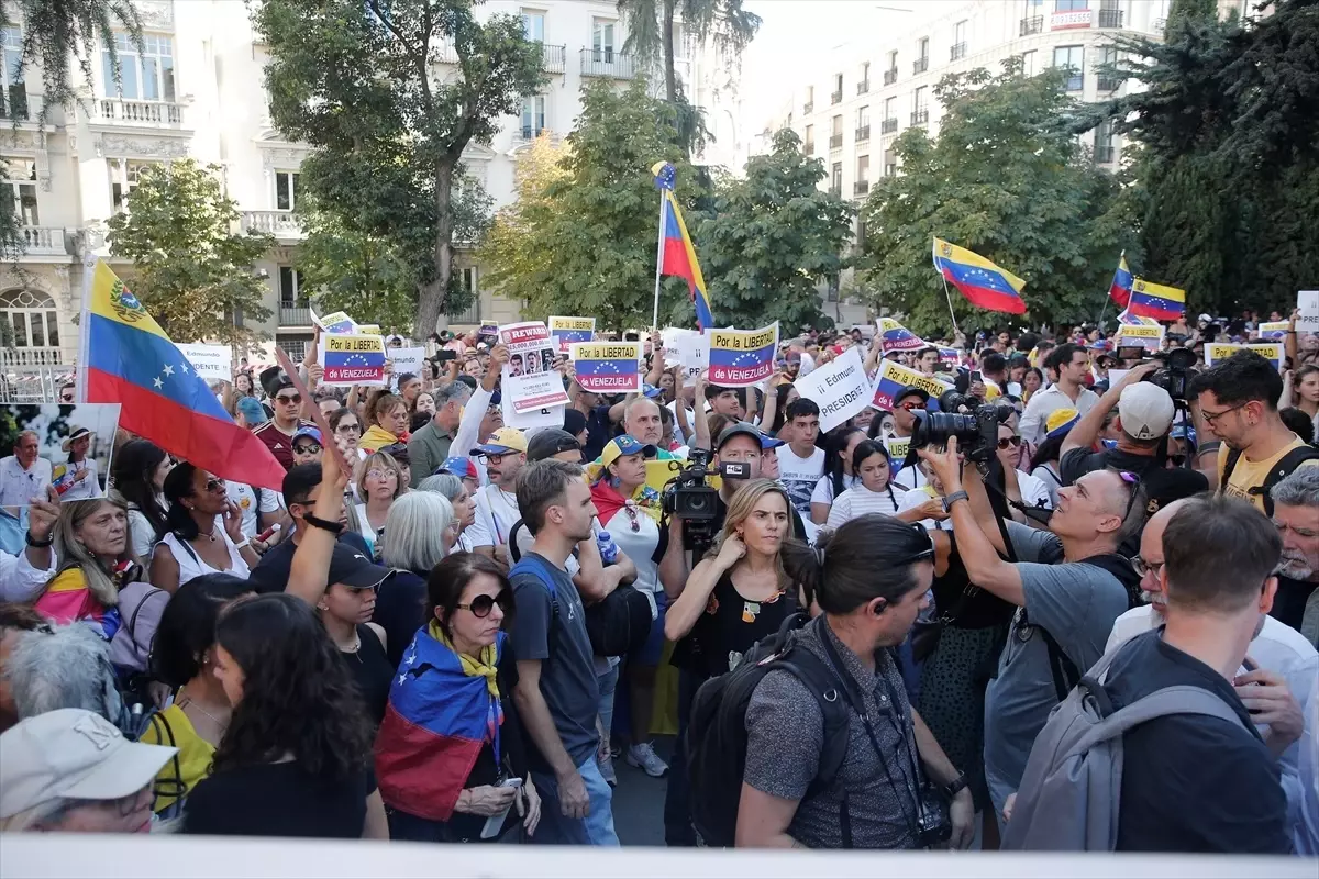İspanya’nın başkenti Madrid’deki Meclis binası önünde toplanan bir grup Venezuelalı göçmen, İspanya hükümetince Madrid’e getirilen ve siyasi sığınma hakkı tanınacağı açıklanan muhalif lider Edmundo Gonzalez’e destek eylemi yaptı.
