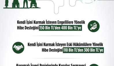 Engelli ve eski hükümlü vatandaşlara hibe desteği yükseltildi