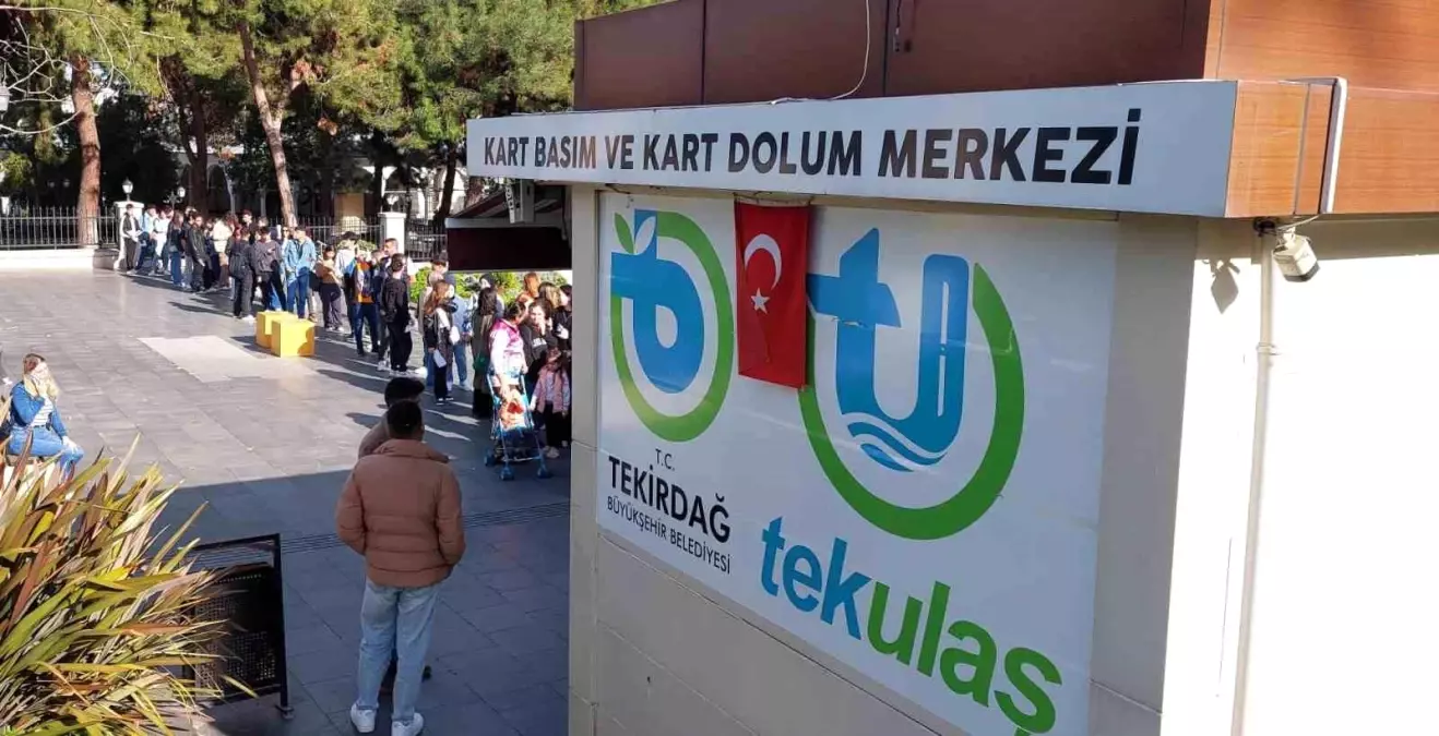 Süleymanpaşa ilçesindeki Tekirdağ Büyükşehir Belediyesi’ne ait kart dolum merkezinde uzun kuyruklar meydana geldi. Kart işlemleri için gelen öğrenciler, sabah saatlerinden itibaren beklemeye başladı ve yoğunluk giderek arttı. Zaman zaman kuyruğun yola kadar uzadığı görüldü. Çok sayıda öğrenci, kartlarını çıkarabilmek için saatlerce beklemek zorunda kaldı.