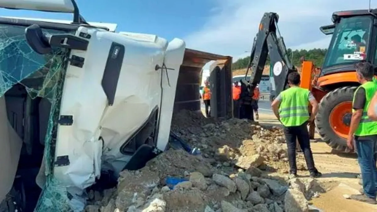Olay yerine gelen iş makinesi yardımıyla, yola saçılan hafriyat başka bir kamyona yüklenerek kaldırıldı. Yol bakım ekipleri, yolda temizleme çalışması yaparak trafiği yeniden açtı. Yaşanan kaza sonrası, TEM otoyolu Ankara istikametinde yoğun araç trafiği oluştu. Kamyonun kaldırılmasının ardından trafik normale döndü. Polis ekipleri, kazayla ilgili inceleme başlattı.