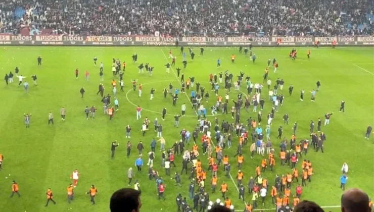 Trabzonsporlu taraftarların sahaya attığı patlayıcı madde ve su bardakları nedeniyle zaman zaman maç durdu. Karşılaşmanın orta hakemi Halil Umut Meler, sahaya atılan maddeler nedeniyle yardımcı hakemleri de orta sahaya çağırarak taraftarların sakinleşmesini bekledi.