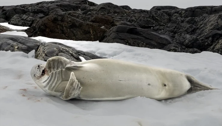 Antarktika’da 6 fok türü bulunduğunu ancak bu türlerden sadece 4’üne Horseshoe Adası’nda rastladıklarını belirten Karaoğlu, “Bunlardan sıklıkla görülen fok türleri sırasıyla Weddell fokları, yengeçyiyen fokları, kürklü foklar ve daha sonrasında leopar foklarıdır. Yengeçyiyen fokları, krilleri süzmek için çok nadir görülen bir diş yapısına sahiptir. Aslında yengeç yemez, krillerle beslenirler ve leopar foklarıyla mücadele halindedir.” diye konuştu.