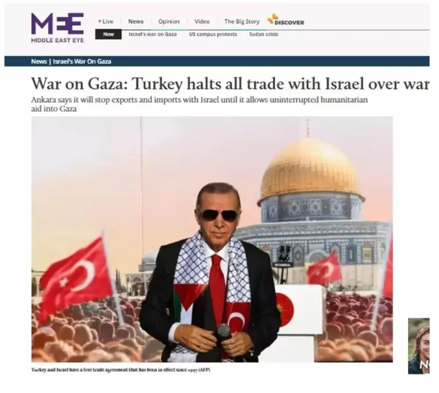 Middle East Eye (MEE) Türk hükümetinin ilk olarak 9 Nisan’da İsrail’e 50’den fazla ürüne ihracat kısıtlaması getirdiğini, daha sonra soykırım davasına müdahil olma kararı aldığını şimdi de ülke ile olan tüm ticaretini durdurduğunu belirterek Ankara’nın tavrının giderek sertleştiğini yazdı.